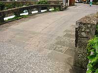 大師堂から中央部分のみが石畳の坂道を下って行くと、市指定有形文化財の石橋、