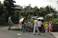 三 名所の里と 訪る人の 松茸土産に 笑の顔