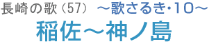 2番が稲佐風景。稲佐の夕映えは福田浦と島々、さらに長崎の街をあかね色に染めます。ほかに稲佐の国際墓地、明治の女傑といわれた“稲佐のお栄”を偲んでいます。
