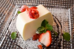 - 3のボウルを氷水にあてて冷やし、少しとろみがついてきたら、型に流して冷蔵庫で一晩冷やす。