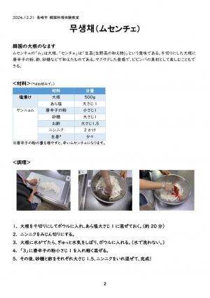 当日作った「豚肉のコチュジャン炒め(チェユクボックム)」と「大根のなます(ムセンチェ)」のレシピを掲載していますのでぜひご家庭で作ってみてください。