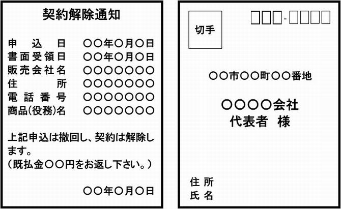 ※ 令和4年6月1日から、書面によるほか、電磁的記録でもクーリング・オフの通知を行うことが可能になりました。電子メールのほか、USBメモリ等の記録媒体や事業者が自社のウェブサイトに設けるクーリング・オフ専用フォーム等により通知を行う場合が挙げられます。Faxを用いたクーリング・オフも可能です。