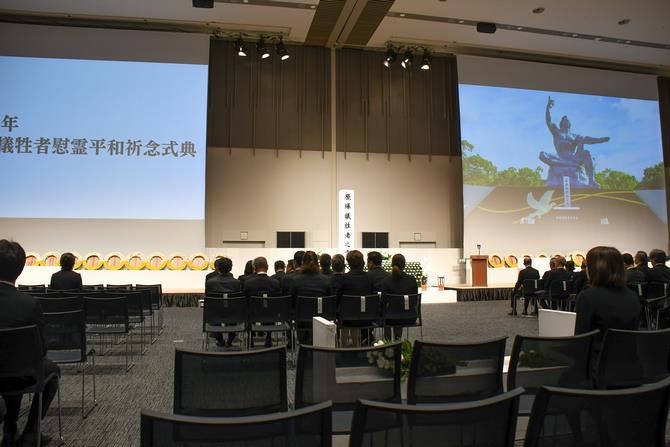※令和5年度は、台風6号の本県接近に伴い、会場を屋内会場の出島メッセ長崎に変更し、参列者の皆さまの安全を第一に考え、主催者(長崎市)のみの縮小開催といたしました。日時:令和5年8月9日(水曜日) 10時45分~11時35分