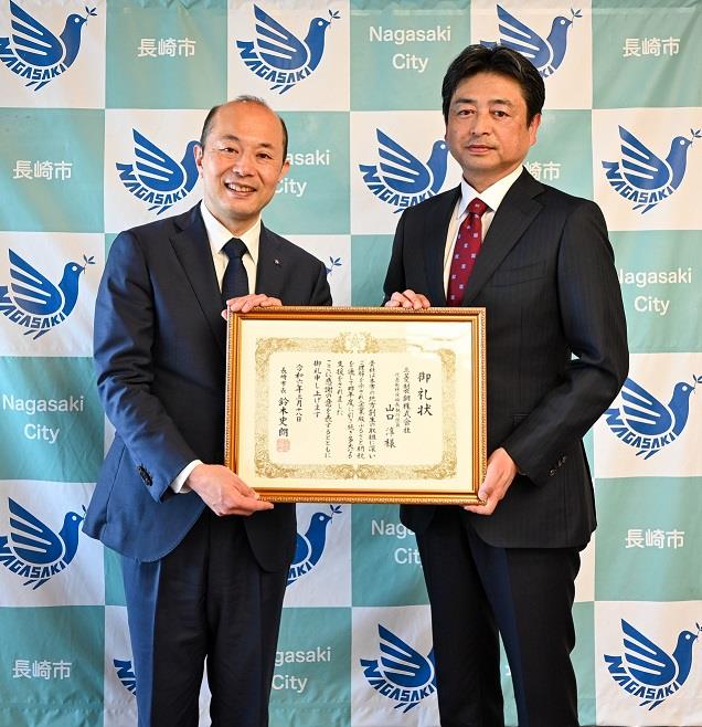 企業版ふるさと納税制度を通じて、長崎市の地方創生の取組みに寄附をいただいた企業に、御礼状を贈呈しました。