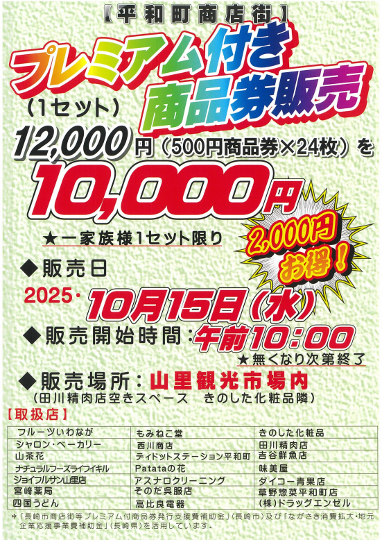 商品券名称 | 平和町商店街プレミアム付き商品券 |