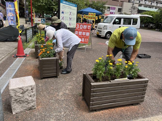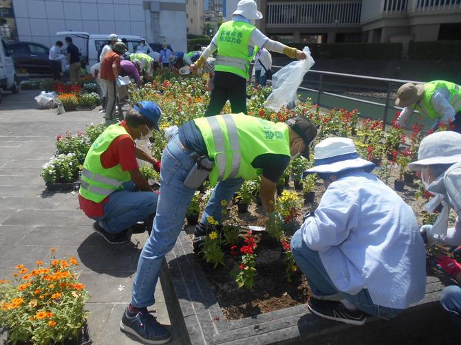 7月22日(金曜日)に中島川沿い(出島表門橋付近)の花壇において、夏の植栽活動を行いました。